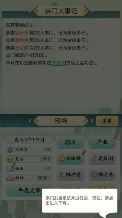 1、创建宗门机构,招收天资弟子,收服强大魂兽,收集各种神妙的修行功法、灵药法宝、神通秘籍。