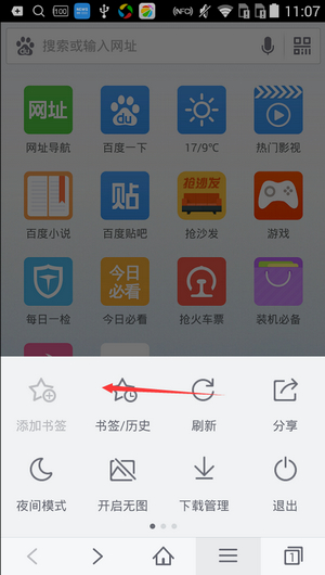 2、进入浏览器主界面后,点击下方标记所示的按钮
