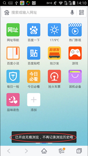 手机开启无痕浏览模式的方法: