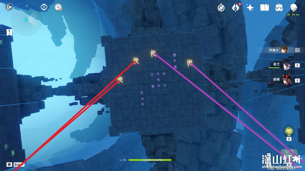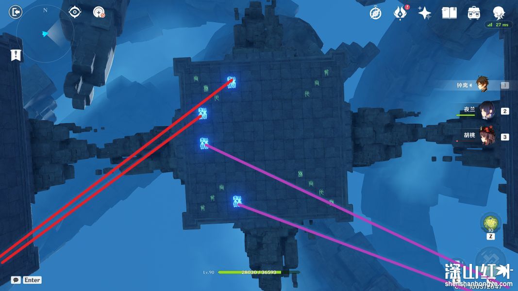(2)那么如何点亮光符呢,在平台上,四个光符分别对应了四个传送装置(蓝色旋涡)