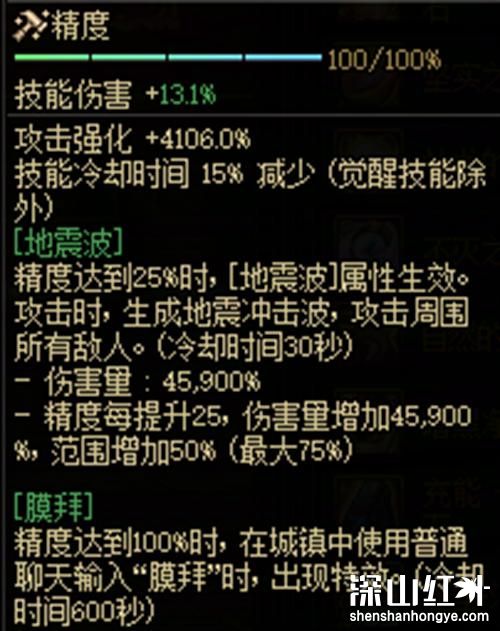 3、它能强化攻击4106%,减少CD15%,并能在攻击时引发地震波,对周围敌人造成45900%的伤害(CD30秒)。此外,奶专属30增益+1、50主动+2。