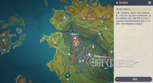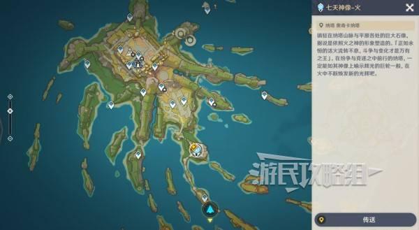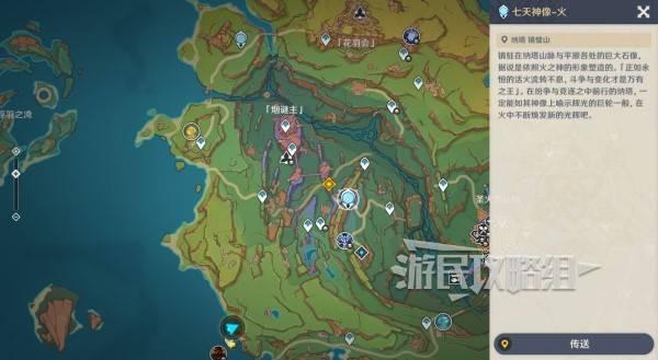 对话结束后,传送到纳塔镜壁山七天神像,前往烟谜主的目标位置。
