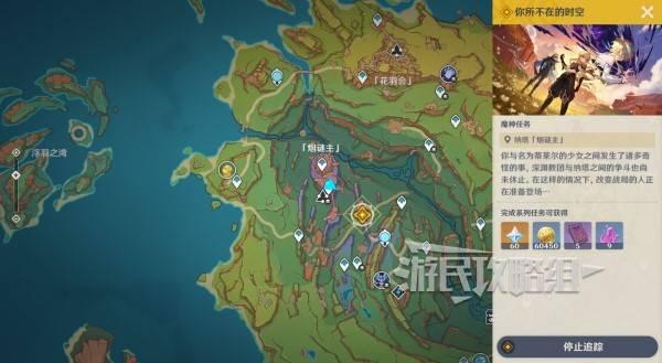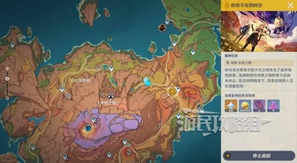 原神你存在的时空活动全流程攻略 任务更新后,跟随指引传送到沃陆之邦安饶之野七天神像前往任务标记位置,触发与伊安珊的对话。
