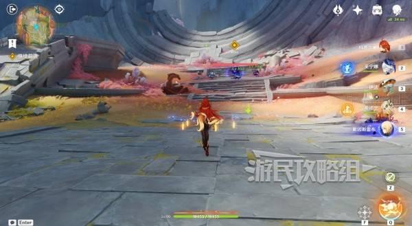 完成战斗后继续触发对话。之后开始反击,优先破坏掉紫色的底座。沿着任务指引一路前进到水边,击败深渊使徒后触发对话。对话结束后,任务完成。