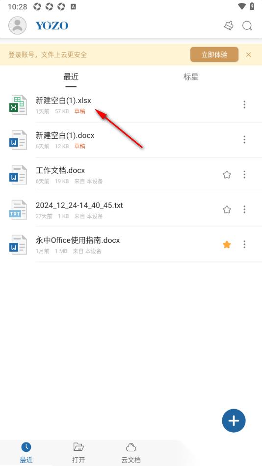 1.当我们将手机上的永中Office点击打开之后,在页面上选择自己喜欢的表格,将其点击打开。