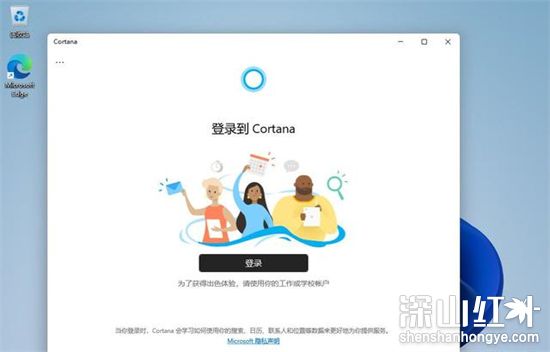 当Cortana应用程序打开时,单击登录,然后使用你的Microsoft账户登录。