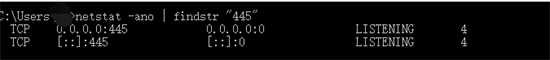 1.查看指定端口(举例图片用的445端口)连接情况:netstat -ano | findstr “80”