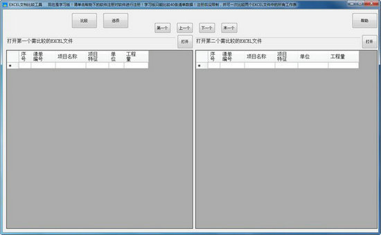 3、这个工具用于比较分部分项清单数据,比较时,自动忽略每页的表头数据